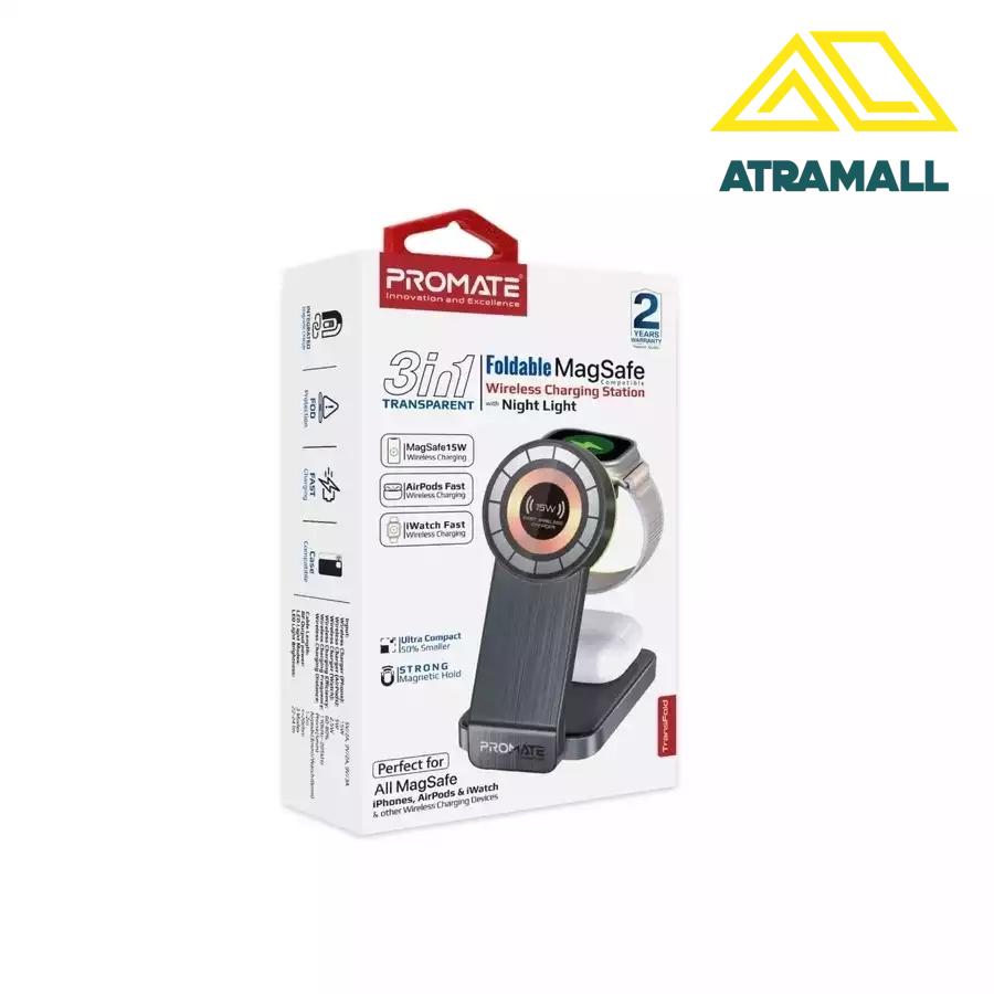 آترامال لوازم جانبی شارژر وایرلس 3 در 1 پرومیت مدل TRANSFOLD.BLACK